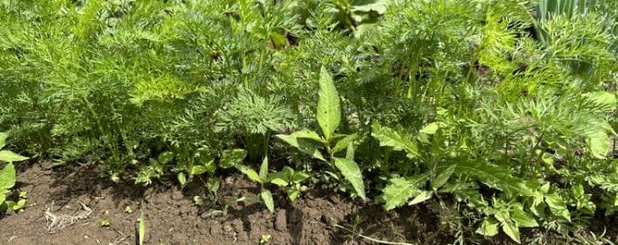 गाजरको ओछ्यानको बीचमा बढ्नको लागि छोडिएको डिलले एक प्रकारको सुगन्धित कोकुन सिर्जना गर्दछ जसले गाजर फ्लाई, यस बालीको मुख्य शत्रुलाई अलमल पार्छ। यसको कडा